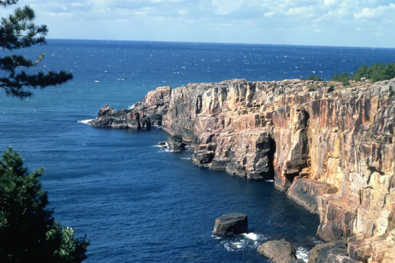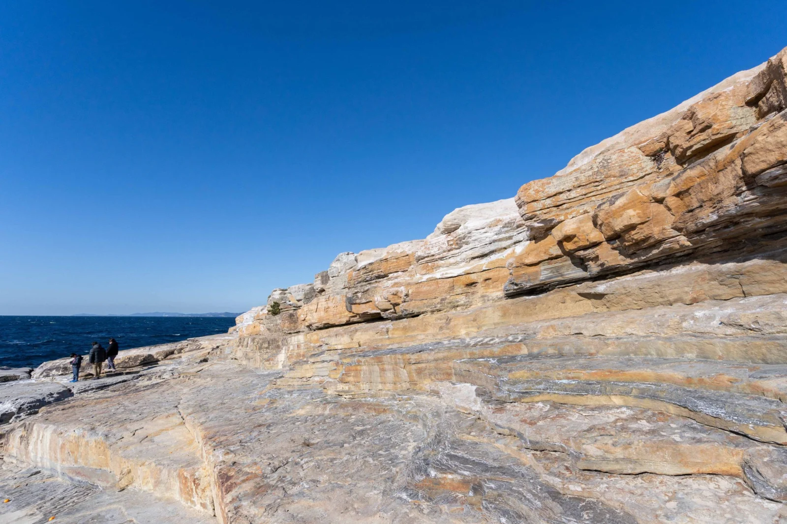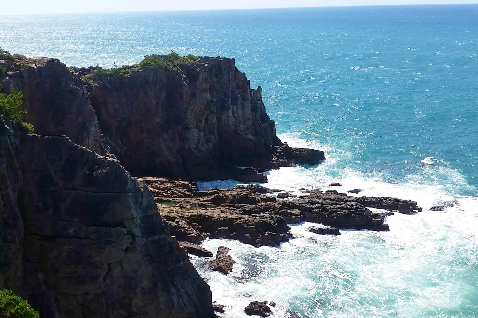 Gaze over the rugged beauty of Sandanbeki Cliffs rising above the sea